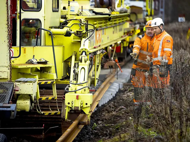 - Spårläget läggs med alternativt med GPS styrning via satellit mot lantmäteriets rutnät eller fixpunkt mot kabelränna. Vid GPS styrning läggs spårmitt med millimeter tolerans mot projekterat läge